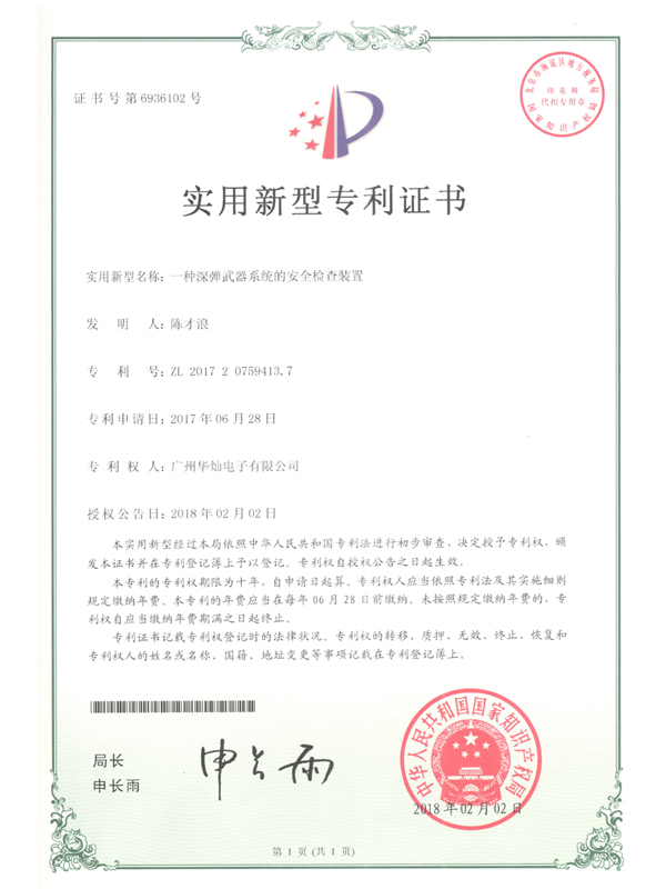 證書號6936102深彈武器系統(tǒng)的安全檢查裝置